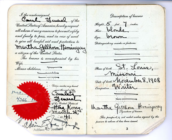 Images are from Martha Gellhorn’s personal papers at Boston University (MGPP), Ernest Hemingway’s personal papers at JFK Library (EHPP), and Princeton University (Princeton)